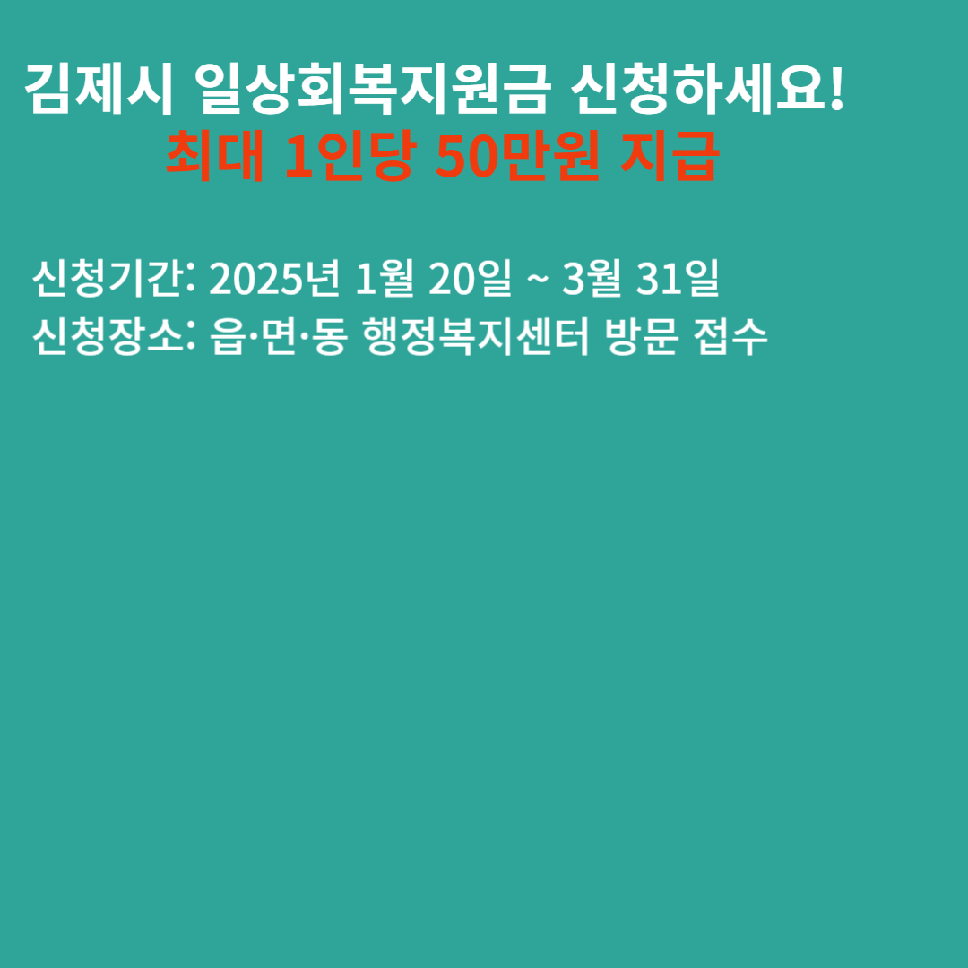 2025 김제시 일상회복지원금 신청하세요! 최대 1인당 50만원 지급 해줍니다.