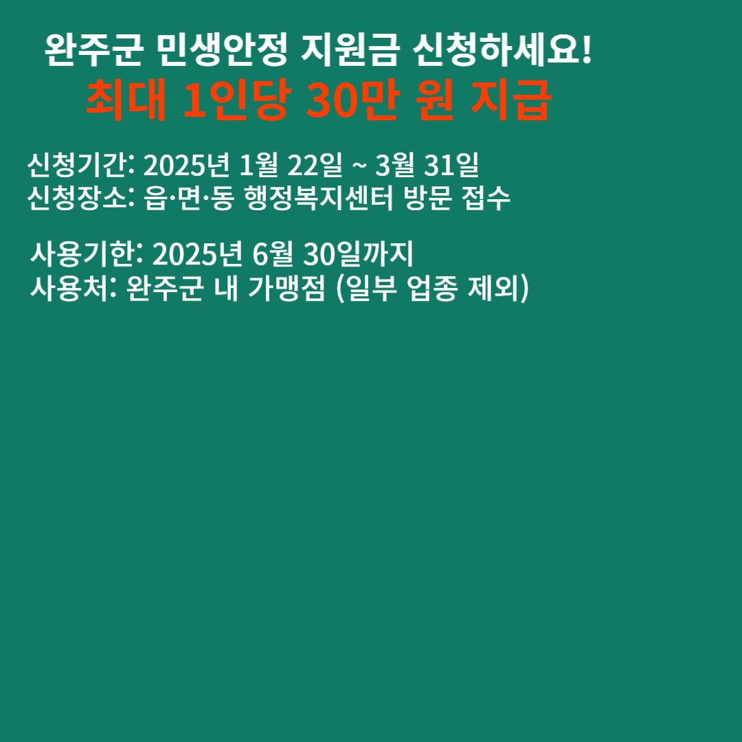 2025 완주군 민생안정 지원금 안내입니다.